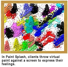 SAT activities such as “Paint Splash” invite the client to throw paint (conceptually) against a screen, giving the therapists an understanding of the client’s feelings.